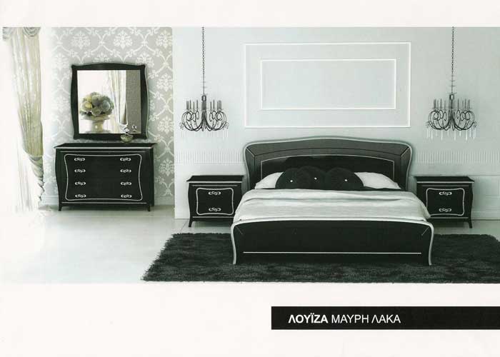 Κρεβατοκάμαρα μοντέρνα Λουίζα λάκα μάυρη με ασημί ή χρύσά τελειώματα άψογο φυνίρισμα παράγεται και με ύφασμα το κεφαλάρι η τιμή περιλαμβάνη το κρεβάτι τα δύο κομοδίνα την τουαλέτα και ο καθρέφτης