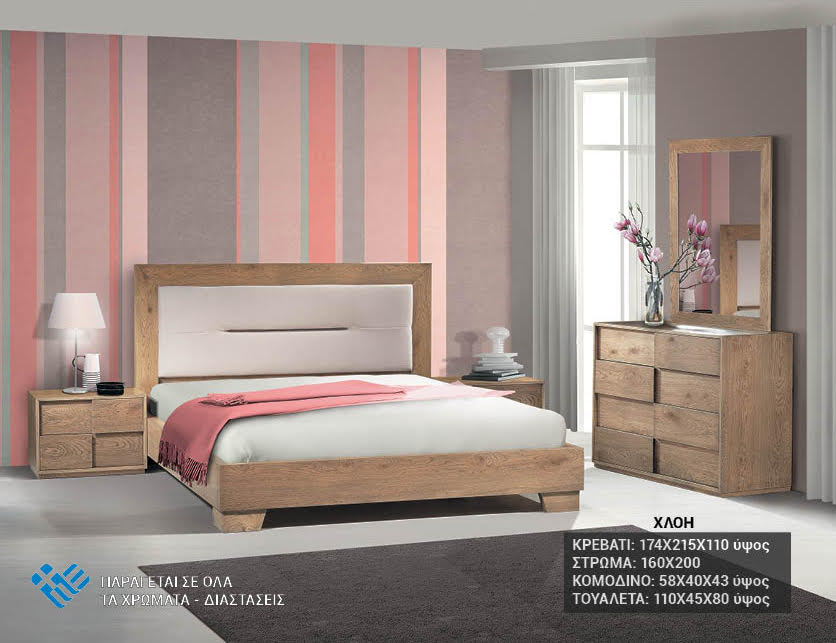 Η συγκεκριμένη κρεβατοκάμαρα σχεδιάστηκε για να ταιριάζει σε όλα τα στυλ σπιτιού.Απλή,λιτή με μοντέρνα διάθεση.Κατασκευασμένη από φυσικό ξύλο δρυός σε φυσική απόχρωση.Χρώματα,διαστάσεις καθώς και ύφασμα στο κεφαλάρι προσαρμόζονται στις ανάγκες του χώρου σας.